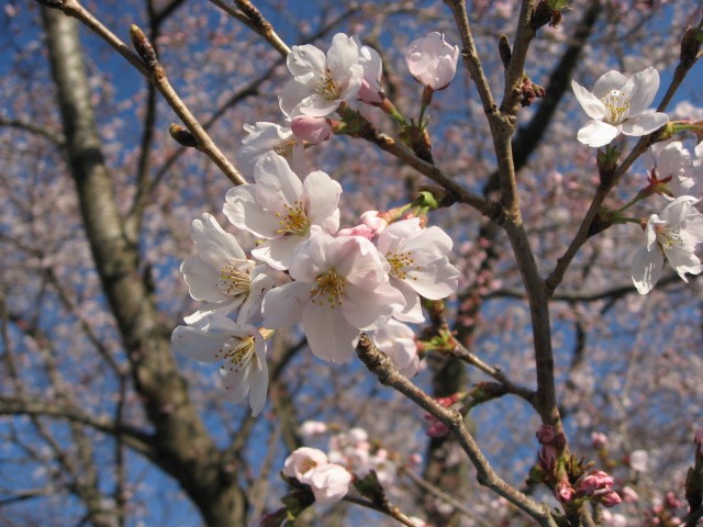 先週は例の春の嵐の後。桜はざっと五分咲きというところ。